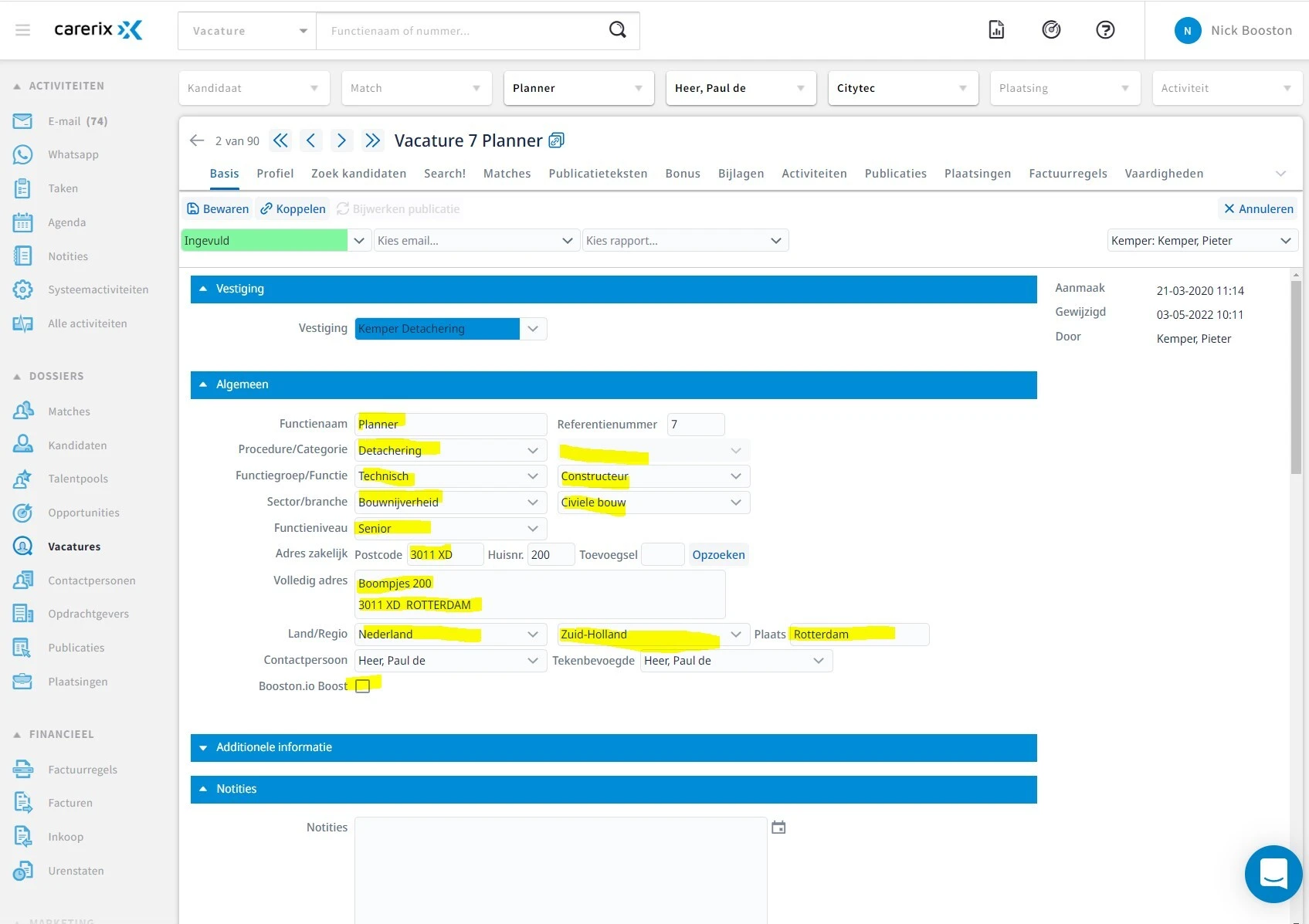 (Let op: zorg ervoor dat er minstens één vacature is gepubliceerd naar Booston via Carerix om de resultaten te kunnen controleren).