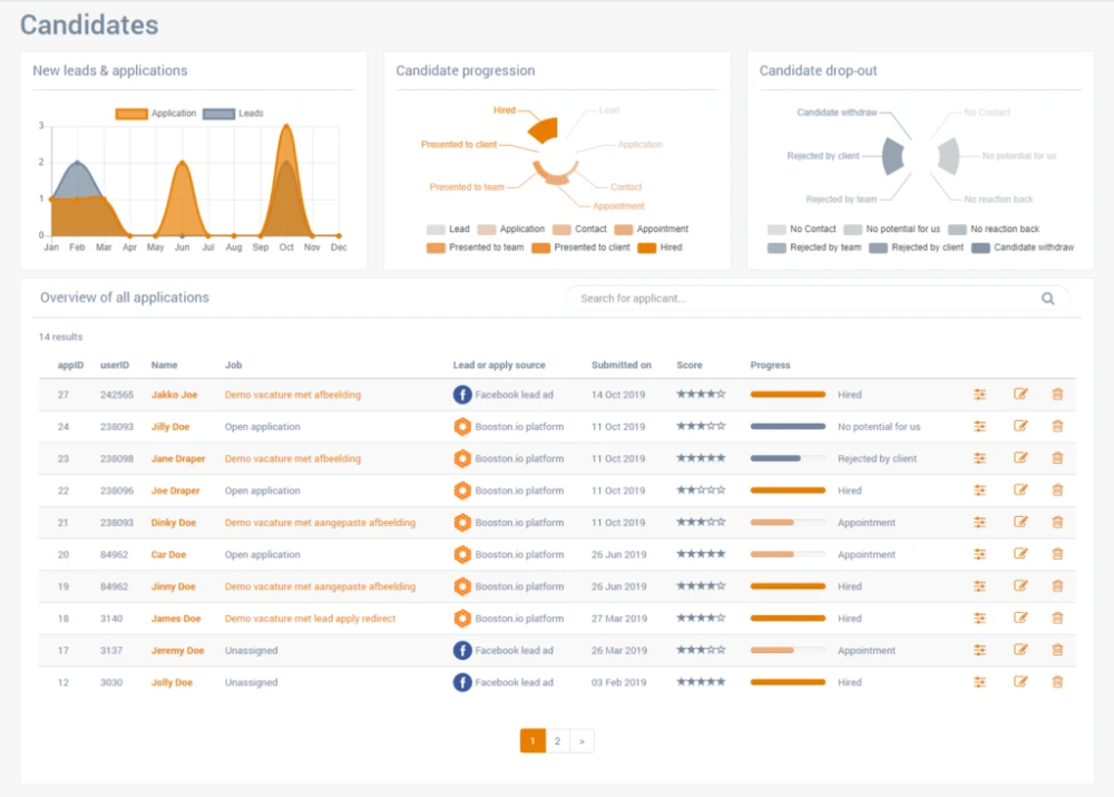 De eerste stap was het koppelen van vacatures en sollicitaties aan BJ Flexpartners haar ATS: Carerix. Dit is met Booston zo in te richten binnen haar dashboards. Carerix is leidend, daar worden alle vacatures en kandidaten actueel bijgewerkt. Booston neemt real time deze bijgewerkte informatie over.