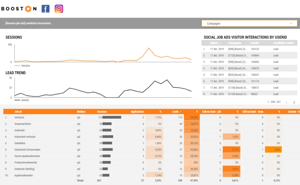 BJ Flexpartners maakt voor gedetailleerde inzage in de campagne gebruik van Booston’s wervingsrapportages.