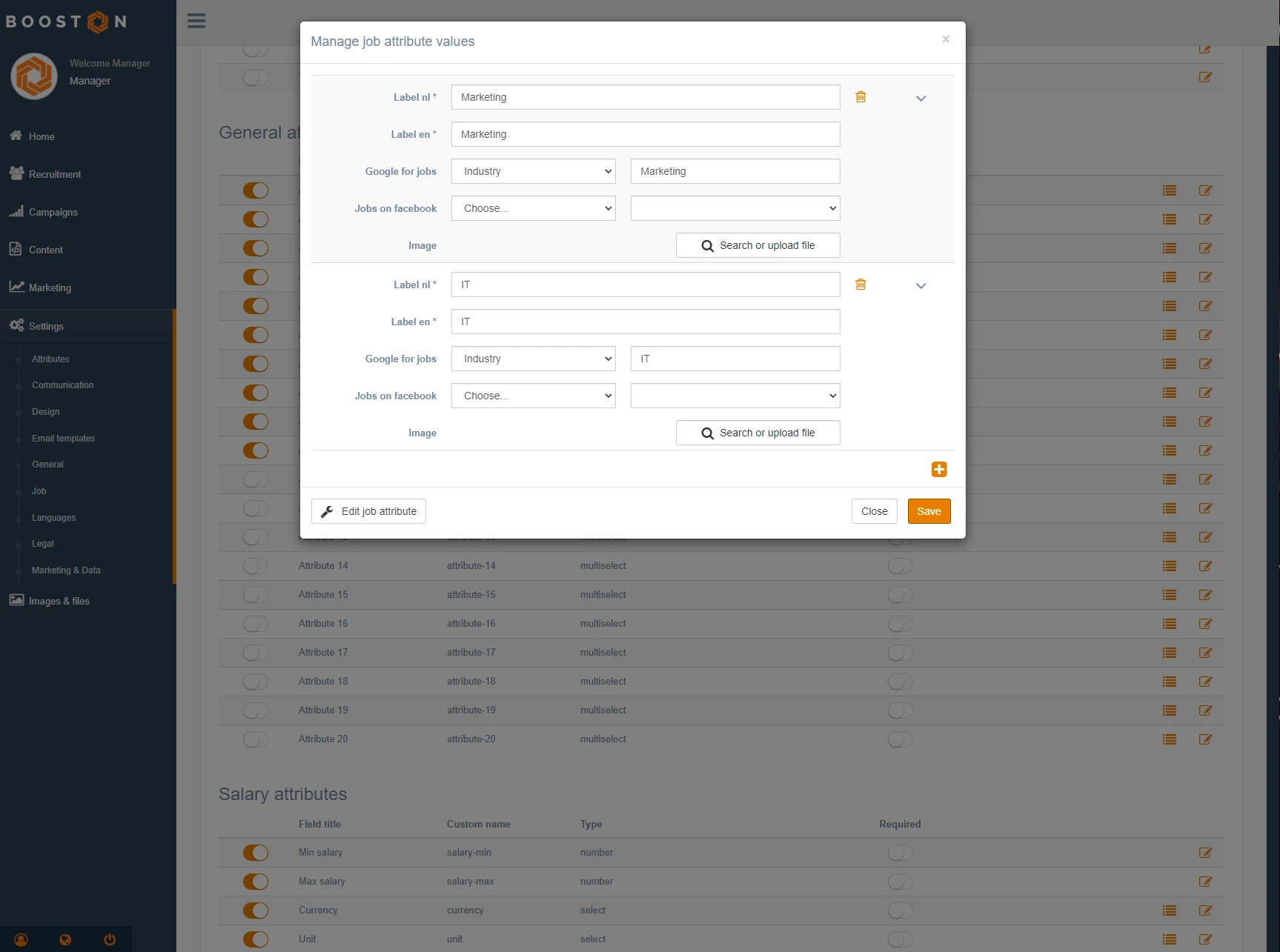 Werk jij met een ATS? Dan zal jij de attributen moeten aanmaken in het ATS. Het is van belang om de attributen te koppelen aan een vacature die live op je Booston recruitment website staat. Door de attributen te koppelen aan een vacature worden deze geïmporteerd naar de Booston backend.