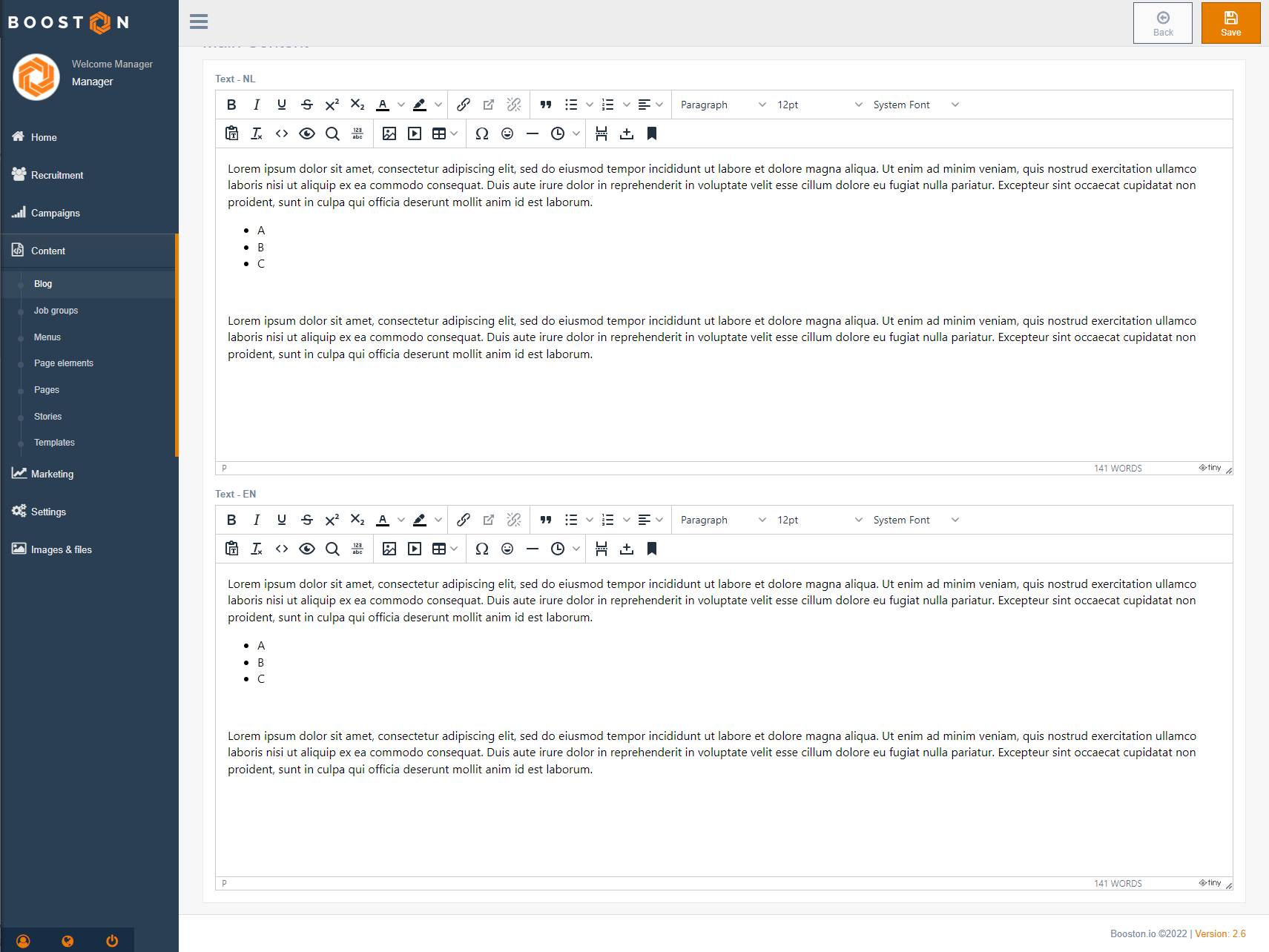 Jij kan met jouw Booston recruitment website verschillende dingen doen om de candidate journey te versterken. In deze blog gaan wij in op meerdere vormen en smaken van de Booston blog features. De Booston blog module hoeft niet persé gebruikt te worden voor blogs. De blog features van Booston zijn multifunctioneel en kunnen allerlei vormen en smaken aannemen. De meest voorkomende vormen gaan wij in deze blog behandelen: blog-, nieuws- en showcase feed.