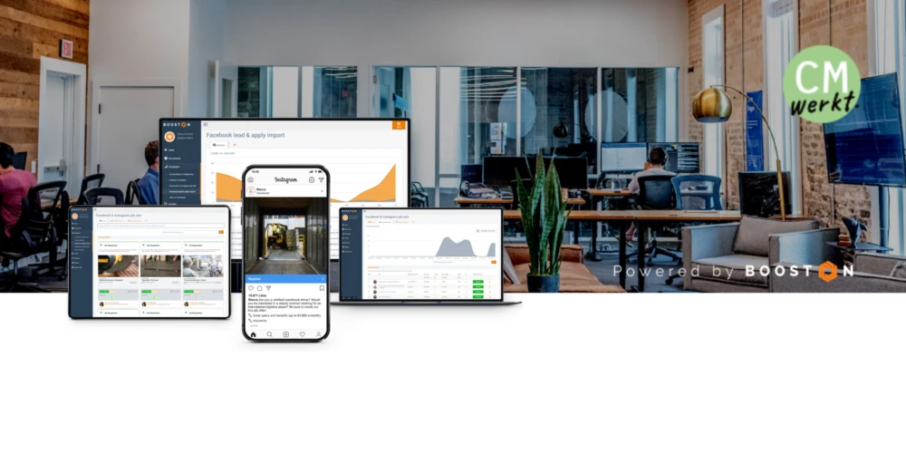 Door een slimme koppeling tussen Otys (het ATS van CM werkt) en Booston staan vacatures in een oogwenk op tientallen vacaturebanken (organisch en Pay-Per-Cick), Google4Jobs, maar ook als advertentie op Facebook en Instagram!