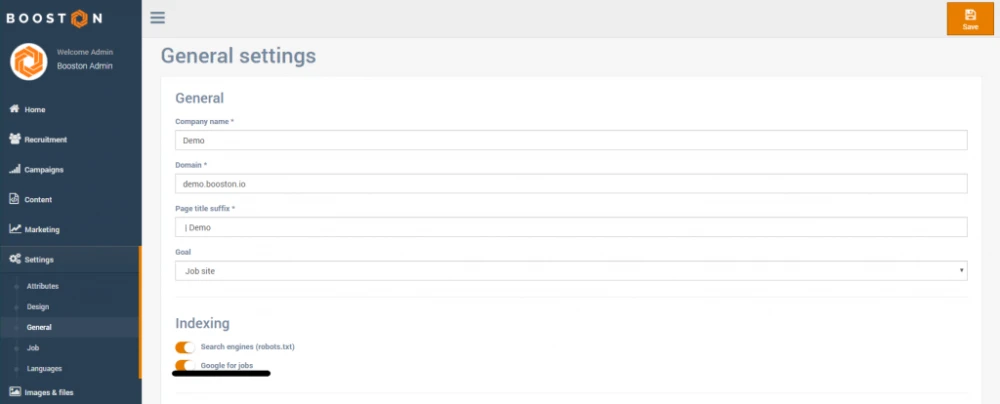 Het technische gedeelte? Dat heeft Booston al voor je opgelost. Je dient het alleen even aan te vinken in het settings menu. Vanaf dat moment worden je vacatures door Google for jobs geïndexeerd en wordt alle opgevoerde informatie gestructureerd aangeleverd.