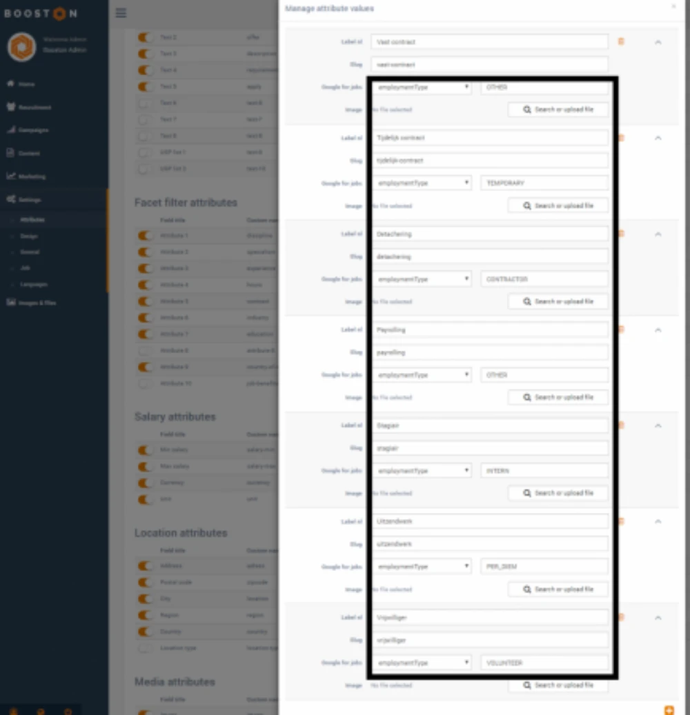 So far, so good. En dan nu het inrichten van deze vacature onderdelen. Dat doet Booston eigenlijk geheel automatisch. Alle bovengenoemde attributen zijn verplichte velden die Booston na het activeren van Google for jobs in stap 1 automatisch structureert en naar Google verzendt.