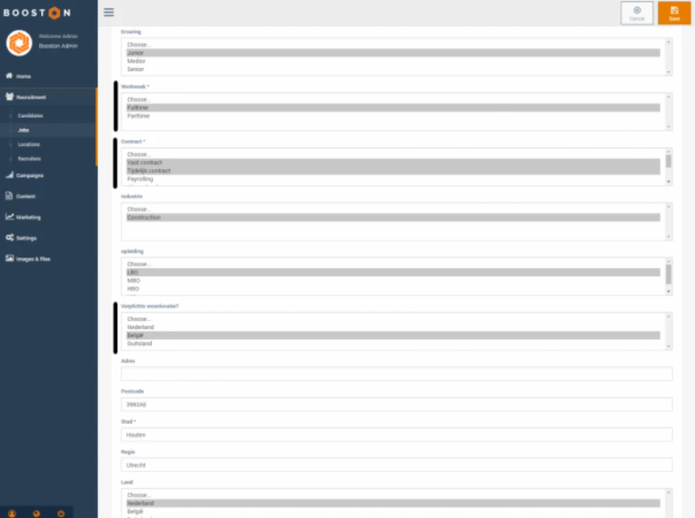 De overige opties staan onder ‘contract’. Uiteraard staat de inrichting en benaming je binnen Booston helemaal vrij. Uitgaande van ons voorstel ziet de Google for jobs inrichting er dan als volgt uit: