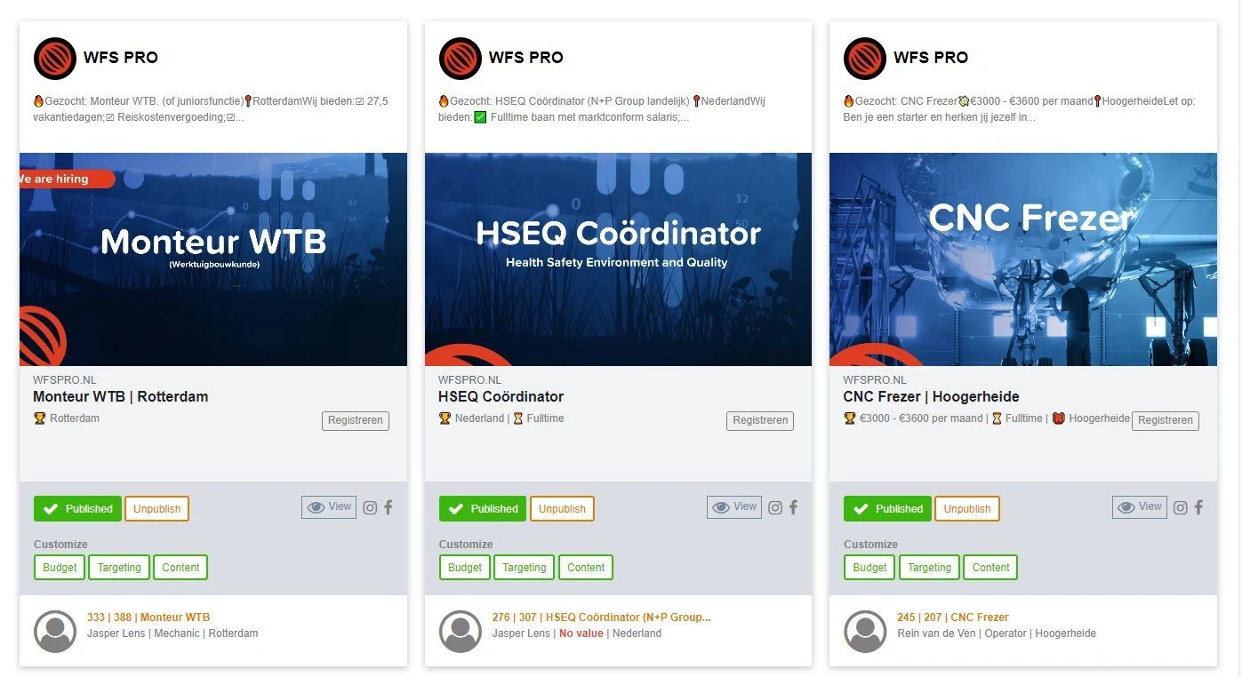 WFS PRO - een arbeidsbemiddelaar binnen technische georiënteerde industrieën - gebruikt onze Booston software voor haar eigen campagnes, maar ook voor campagnes en werken-bij-sites voor haar klanten.