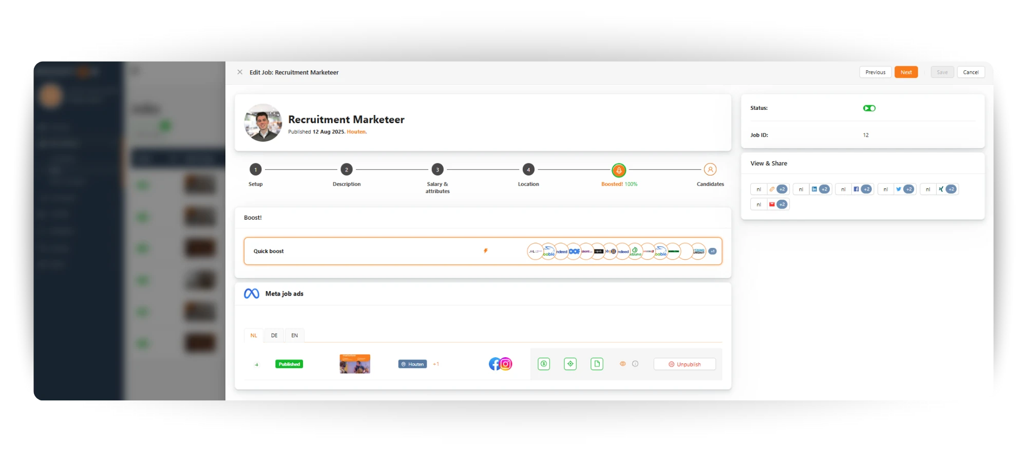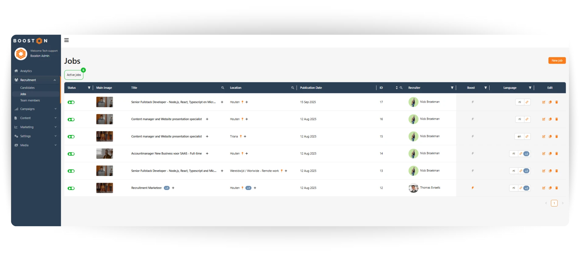 Auf unserer KI-Seite erfährst du, wie Booston dir die Arbeit wirklich abnimmt: von automatischer Lebenslaufanalyse und intelligenter Kandidatenbewertung basierend auf Stelleninhalten bis hin zu klaren Einblicken, welche Kampagnen am besten performen. Alles läuft KI-gestützt und vollständig automatisch.