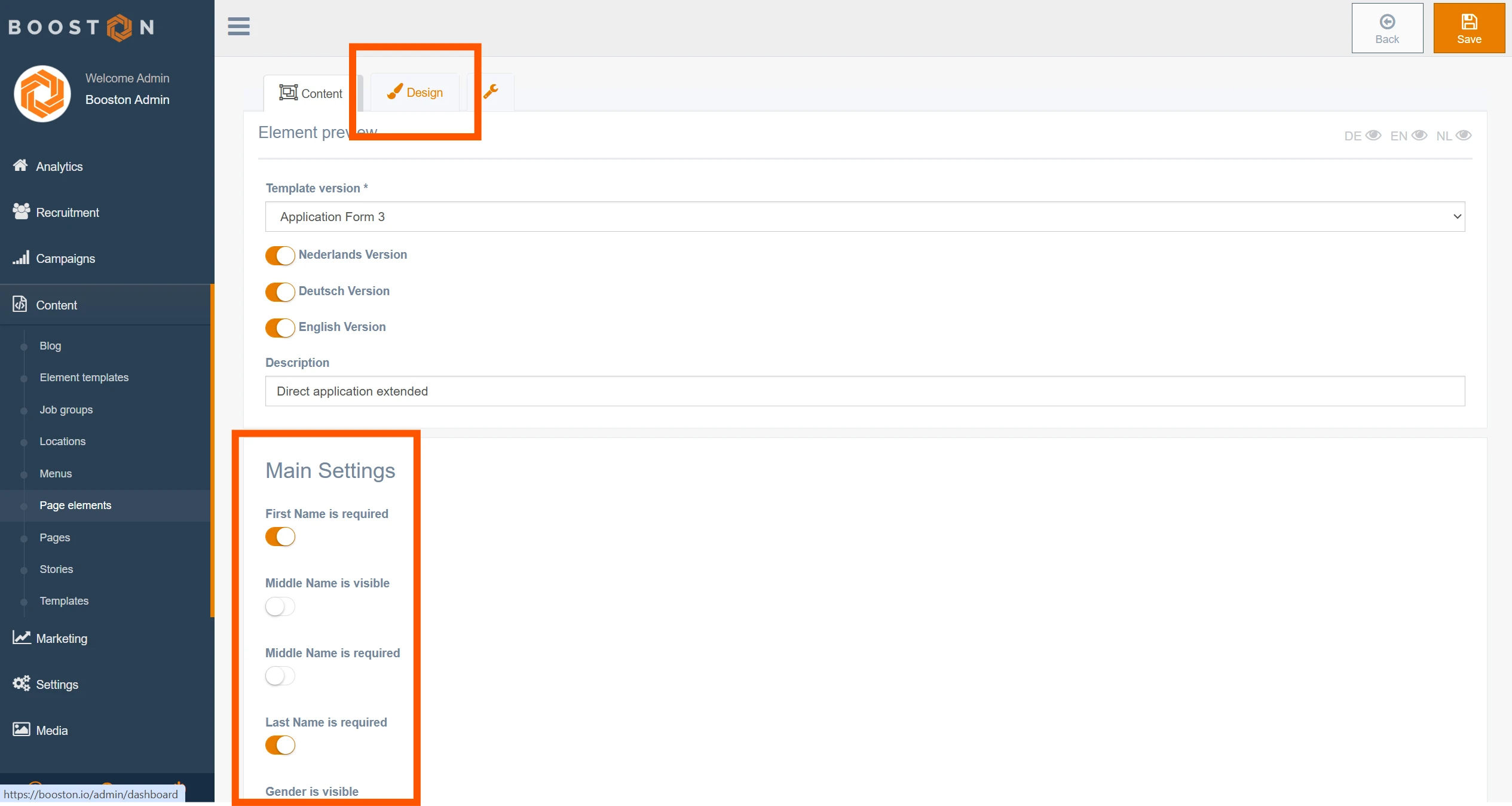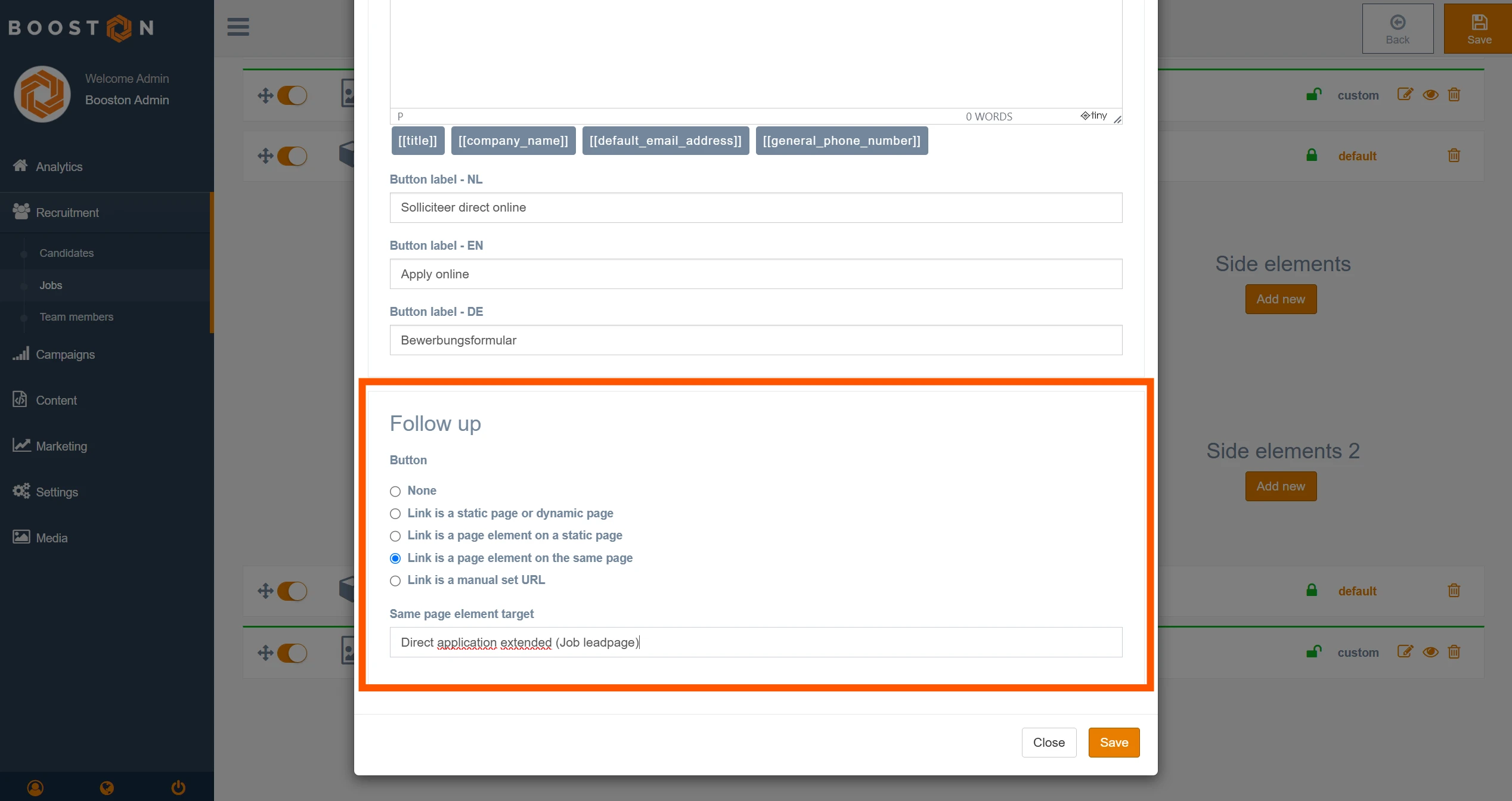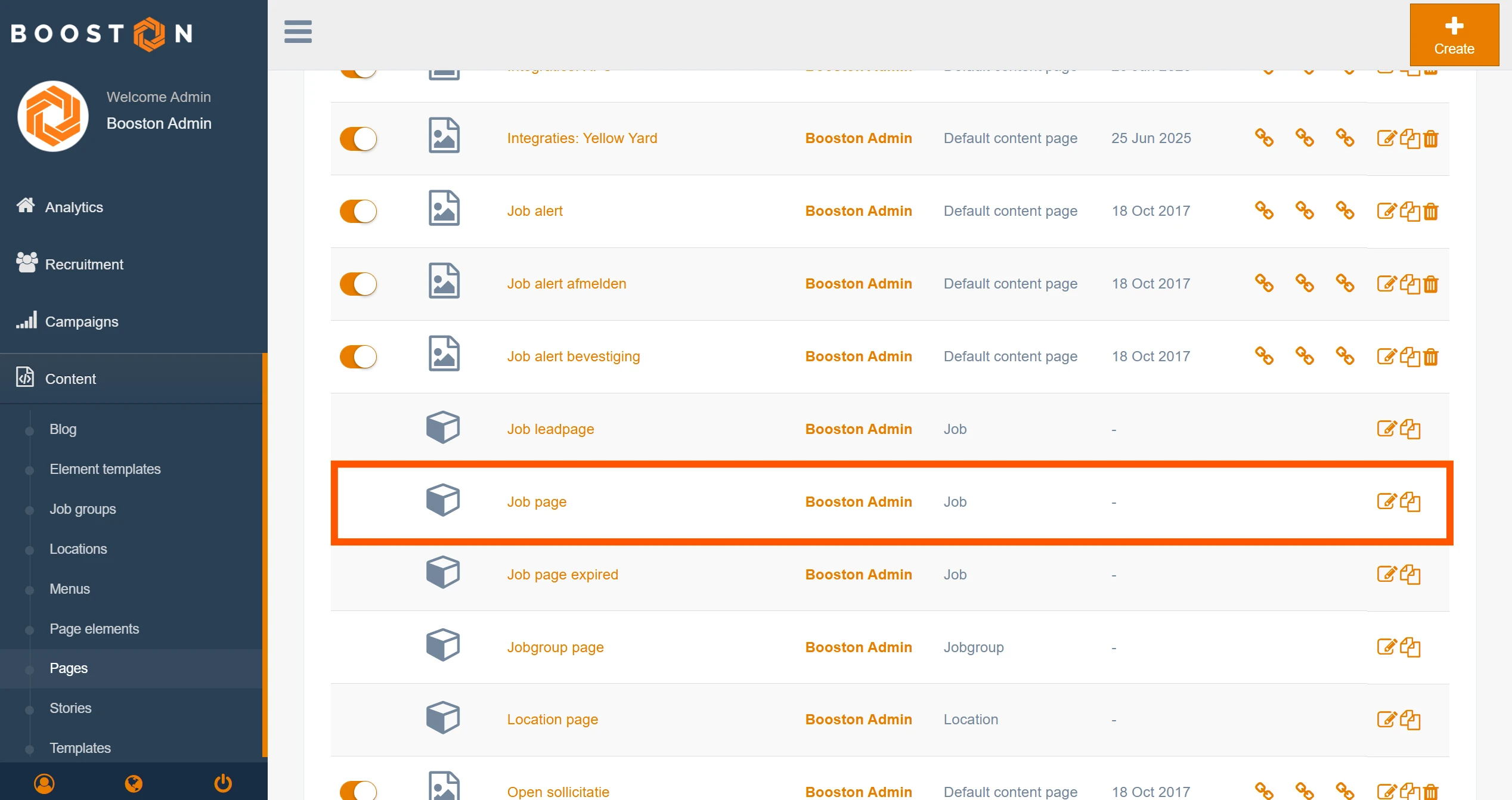 In your Booston environment, go to Content > Pages > Job Page